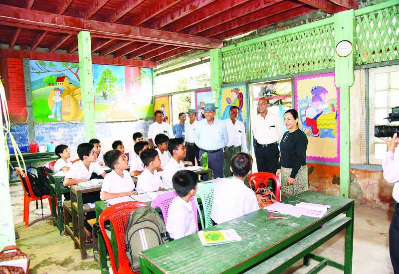 ရခိုင်ပြည်နယ်အတွင်း မုန်တိုင်းဒဏ်ကြောင့် ပျက်စီးဆုံးရှုံးမှုများ ပြန်လည်ထူထောင်ရေးလုပ်ငန်းများကို အနီးကပ်ကြီးကြပ်ကွပ်ကဲရန် စစ်တွေမြို့၌ ရောက်ရှိနေသော နိုင်ငံတော်စီမံအုပ်ချုပ်ရေးကောင်စီအဖွဲ့ဝင် ဒုတိယဝန်ကြီးချုပ်နှင့် ပြည်ထောင်စုဝန်ကြီး ဗိုလ်ချုပ်ကြီးတင်အောင်စန်းသည် ပြည်ထောင်စုဝန်ကြီးများဖြစ်ကြသည့် ဒုတိယဗိုလ်ချုပ်ကြီး ထွန်းထွန်းနောင်၊ ဦးမျိုးသန့်နှင့် ဒေါက်တာသက်သက်ခိုင်၊ ဒုတိယဝန်ကြီးများ၊ တာဝန်ရှိသူများနှင့်အတူ ယနေ့မွန်းလွဲပိုင်းတွင် စစ်တွေမြို့ရှိ အခြေခံပညာကျောင်းများတွင် ကျောင်းသား ကျောင်းသူများ အေးချမ်းပျော်ရွှင်စွာ ပညာသင်ကြားနေမှုများကို သွားရောက်ကြည့်ရှု အားပေးသည်။