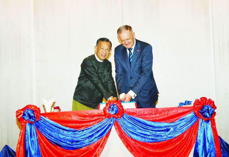 ရုရှားဖက်ဒရေးရှင်းနိုင်ငံ၏ အမျိုးသားနေ့အထိမ်းအမှတ်ဧည့်ခံပွဲ အခမ်းအနားကို ယနေ့ညပိုင်းတွင် ရန်ကုန်မြို့ Lotte Hotel ၌ကျင်းပရာ ရင်းနှီးမြှုပ်နှံမှုနှင့် နိုင်ငံခြားစီးပွားဆက်သွယ်ရေးဝန်ကြီးဌာန ပြည်ထောင်စုဝန်ကြီး ဒေါက်တာကံဇော် တက်ရောက်သည်။
