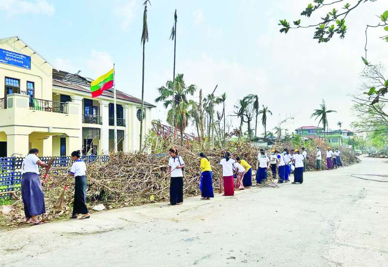 ဟိုတယ်နှင့် ခရီးသွားလာရေးဝန်ကြီးဌာန ပြည်ထောင်စုဝန်ကြီး ဦးအောင်သော်သည် ပြည်နယ်စီးပွားရေးရာဝန်ကြီး ဦးစံရွှေမောင်နှင့်အတူ ယမန်နေ့နံနက်ပိုင်းတွင် စစ်တွေမြို့ရှိ ဟိုတယ်နှင့်ခရီးသွားညွှန်ကြားမှု ဦးစီးဌာနရုံးခွဲသို့သွားရောက်၍ မိုခါမုန်တိုင်းဒဏ်ကြောင့် ရုံးအဆောက်အဦနှင့် ဝန်ထမ်းအိမ်ရာ ပျက်စီးမှုအခြေအနေကိုကြည့်ရှုပြီး ဝန်ထမ်းများ နှင့်တွေ့ဆုံ၍ ရုံးလုပ်ငန်းများ အရှိန်အဟုန်မပြတ် စနစ်တကျ ဆောင်ရွက်ကြရေး မှာကြားပြီး ထောက်ပံ့ငွေများ ပေးအပ်ကာ အားပေးစကား ပြောကြားခဲ့သည်။