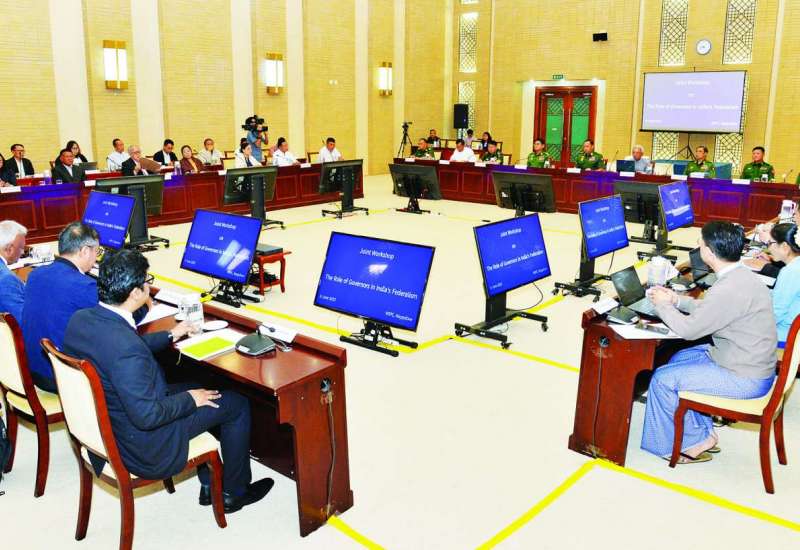 အိန္ဒိယနိုင်ငံ၏ ဖက်ဒရယ်စနစ်အတွင်းရှိ အုပ်ချုပ်ရေးမှူးများ၏အခန်းကဏ္ဍ (The Role of Gove-rnors in India’s Federalism) ဆိုင်ရာ အလုပ်ရုံဆွေးနွေးပွဲကို ယနေ့နံနက်ပိုင်းတွင် နေပြည်တော်ရှိ အမျိုးသားစည်းလုံးညီညွတ်ရေးနှင့် ငြိမ်းချမ်းရေးဖော်ဆောင်မှုဗဟိုဌာန၌ ကျင်းပသည်။