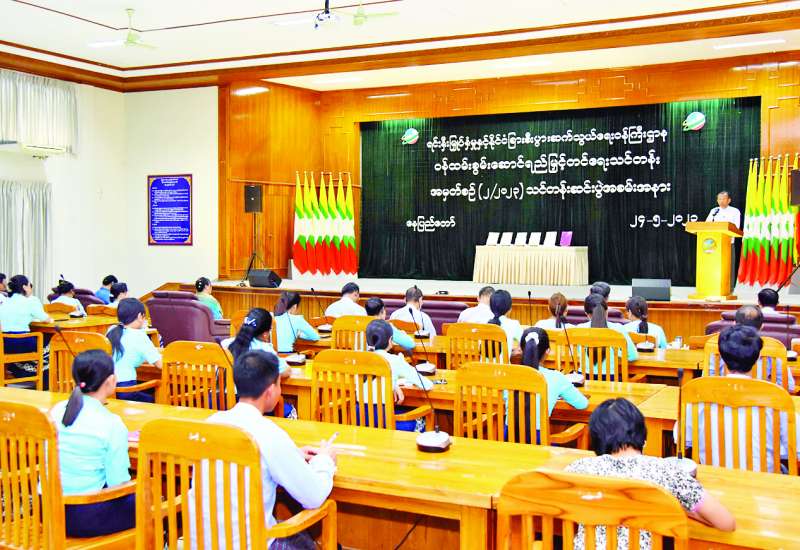 ရင်းနှီးမြှုပ်နှံမှုနှင့် နိုင်ငံခြားစီးပွားဆက်သွယ်ရေးဝန်ကြီးဌာန ဝန်ထမ်းများ၏ စွမ်းဆောင်ရည်ဖွံ့ဖြိုးတိုးတက်စေရန် ရည်ရွယ်သည့် ဝန်ထမ်းစွမ်းဆောင်ရည်မြှင့်တင်ရေးမွမ်းမံသင်တန်းအမှတ်စဉ်(၂/၂၀၂၃) သင်တန်းဆင်းပွဲကို ယနေ့မွန်းလွဲပိုင်းတွင် ရင်းနှီးမြှုပ်နှံမှုနှင့် နိုင်ငံခြားစီးပွားဆက်သွယ်ရေးဝန်ကြီးဌာန ရုံးအမှတ်(၁)၌ကျင်းပရာ ပြည်ထောင်စုဝန်ကြီး ဒေါက်တာကံဇော် တက်ရောက်အမှာစကားပြောကြားသည်။