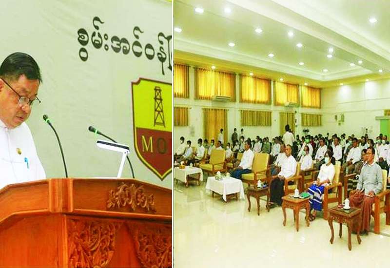 ၂၀၂၃-၂၀၂၄ ပညာသင်နှစ်တွင် စွမ်းအင်ဝန်ကြီးဌာနရှိ ဝန်ထမ်းသားသမီးများမှ မူကြိုနှင့် KG+9 အထိ တက်ရောက်မည့် ကျောင်းသား ကျောင်းသူများအား ပညာသင်ထောက်ပံ့ကြေး ပေးအပ်ပွဲအခမ်းအနားကို ယနေ့နံနက်ပိုင်းက ရုံးအမှတ် (၆) ရှိ ရတနာခန်းမ၌ ကျင်းပရာ စွမ်းအင်ဝန်ကြီးဌာန ပြည်ထောင်စုဝန်ကြီး ဦးမျိုးမြင့်ဦး တက်ရောက်အမှာစကား ပြောကြားသည်။