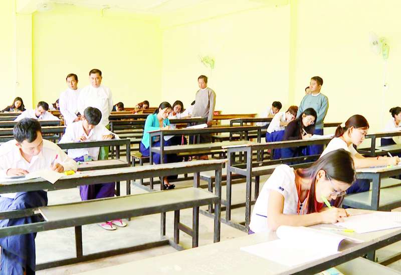 ပညာရေးဝန်ကြီးဌာန ပြည်ထောင်စုဝန်ကြီး ဒေါက်တာညွန့်ဖေသည် တာ၀န်ရှိသူများနှင့်အတူ ယနေ့နံနက်ပိုင်းက မိတ္ထီလာမြို့နယ် အမှတ်(၄) အခြေခံပညာအထက်တန်းကျောင်း စာစစ်ဌာန၊ အမှတ်(၁) အခြေခံပညာ အထက်တန်းကျောင်း စာစစ်ဌာနနှင့် အမှတ်(၂) အခြေခံပညာ အထက်တန်းကျောင်း စာစစ်ဌာနများသို့သွားရောက်၍ ကျောင်းသား ကျောင်းသူများ ၂၀၂၃ ခုနှစ် တက္ကသိုလ်၀င်စာမေးပွဲ စတုတ္ထနေ့ ဓာတုဗေဒဘာသာရပ် အေးချမ်းစွာဖြေဆိုနေမှုကို လှည့်လည်ကြည့်ရှုအားပေးသည်။