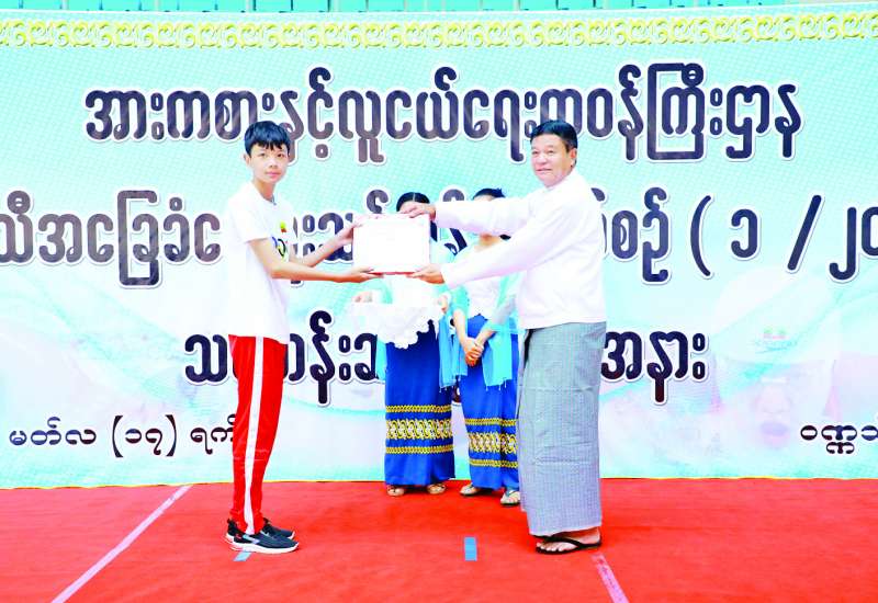 ကျန်းမာရေးဝန်ကြီးဌာန ပြည်ထောင်စုဝန်ကြီး ပါမောက္ခ ဒေါက်တာ သက်ခိုင်ဝင်းသည် မတ် ၁၁ ရက်မှ ၁၂ ရက်အထိ မြန်မာအပြည်ပြည်ဆိုင်ရာ ကွန်ဗင်းရှင်းဗဟိုဌာန (MICC-2) နေပြည်တော်၌ ကျင်းပခဲ့သည့် မြန်မာနိုင်ငံ ကျန်းမာရေးပညာရပ်ဆိုင်ရာ နှီးနှောဖလှယ်ပွဲ (၂၀၂၃) ကို အောင်မြင်စွာကျင်းပနိုင်ခြင်း အထိမ်းအမှတ်အဖြစ် ယနေ့နံနက်ပိုင်းက နေပြည်တော်ရှိ ကျန်းမာရေးဝန်ကြီးဌာနတွင် ကျင်းပသော Scrabble ပြိုင်ပွဲသို့ တက်ရောက်အားပေးကာ ဆုရရှိသူများကို ပြိုင်ပွဲအထိမ်းအမှတ် ဂုဏ်ပြုဆုတံဆိပ်နှင့် ချီးမြှင့်ငွေများကို ပေးအပ်သည်။