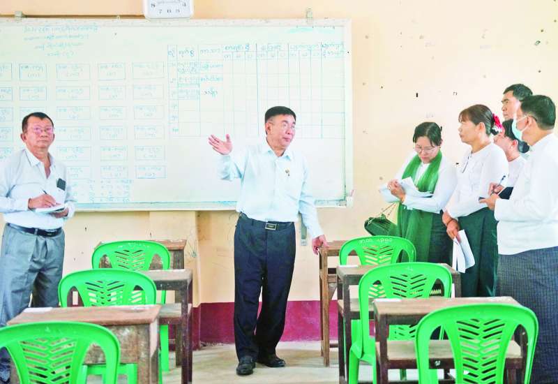 ပညာရေးဝန်ကြီးဌာန ပြည်ထောင်စုဝန်ကြီး ဒေါက်တာညွန့်ဖေသည် ဒုတိယညွှန်ကြားရေးမှူးချုပ်များနှင့်အတူ ယနေ့နံနက်ပိုင်းတွင် ဧရာဝတီတိုင်းဒေသကြီးရှိ အခြေခံပညာအထက်တန်းစာစစ်ဌာနများနှင့် ကျောင်းဆောင်များသို့ လှည့်လည်ကြည့်ရှုစစ်ဆေးသည်။