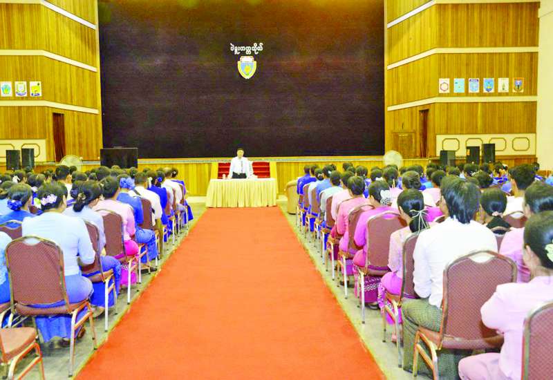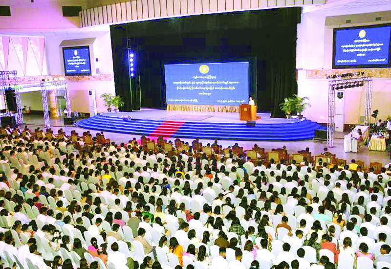 ကျန်းမာရေးဝန်ကြီးဌာန ပြည်ထောင်စုဝန်ကြီး ပါမောက္ခ ဒေါက်တာသက်ခိုင်ဝင်းသည် ယနေ့တွင် ဆရာဝန် (သစ်လွင်) နှင့် သွားနှင့်ခံတွင်းဆရာဝန် (သစ်လွင်) များအား နိုင်ငံ့ဝန်ထမ်း ပြန်တမ်းဝင်အရာရှိအဖြစ် တာဝန်ပေးအပ်ခြင်းအခမ်းအနား ဒုတိယပိုင်းသို့ တက်ရောက်သည်။