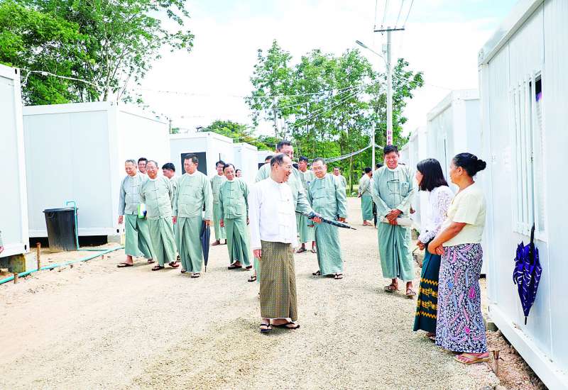 ပြည်ထောင်စုရွေးကောက်ပွဲကော်မရှင်ဥက္ကဋ္ဌ ဦးကိုကို၊ ဒုတိယဥက္ကဋ္ဌ ဦးသန်းစိုးနှင့် အဖွဲ့ဝင်များသည် ယနေ့မွန်းလွဲ ၂ နာရီတွင် ပြည်ထောင်စုရွေးကောက်ပွဲကော်မရှင်ရုံးအနီး ထိန်းသိမ်းဧရိယာ၌ ငလျင်ဘေးသင့် ဝန်ထမ်းအိမ်ထောင်စု ၈၈ စု ယာယီနေထိုင်ရန်အတွက် တပ်ဆင်တည်ဆောက်ပြီးစီးပြီဖြစ်သော အမျိုးသားသဘာဝဘေးအန္တရာယ်ဆိုင်ရာ စီမံခန့်ခွဲမှုကော်မတီက ခွဲဝေချထားပေးသည့် Con-tainer House ၈၈ လုံးသို့ ဝန်ထမ်းများ ပြောင်းရွှေ့နေထိုင်မှုကို သွားရောက်ကြည့်ရှုစစ်ဆေးသည်။