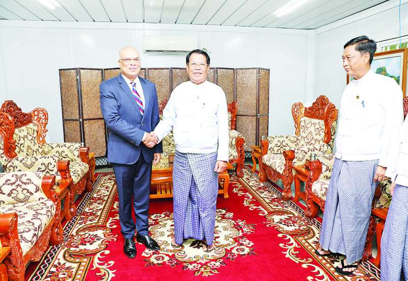 လျှပ်စစ်စွမ်းအားဝန်ကြီးဌာန ပြည်ထောင်စုဝန်ကြီး ဦးဉာဏ်ထွန်းသည် ယနေ့ မွန်းလွဲပိုင်းတွင် မြန်မာနိုင်ငံဆိုင်ရာ အိန္ဒိယနိုင်ငံသံအမတ်ကြီး H.E Mr. Abhay Thakur အား နေပြည်တော်ရှိ လျှပ်စစ်စွမ်းအားဝန်ကြီးဌာန ရုံးအမှတ် (၂၇) ပြည်ထောင်စုဝန်ကြီးဧည့်ခန်းမ၌ လက်ခံတွေ့ဆုံသည်။