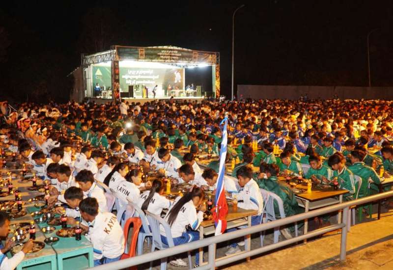 ၂၀၂၂-၂၀၂၃ပညာသင်နှစ် အခြေခံပညာကျောင်းသားအားကစားပွဲတော် ဆုချီးမြှင့်ပွဲ၊ ပိတ်ပွဲနှင့်ညစာစားပွဲအခမ်းအနားကို ယမန်နေ့ညနေ ၆ နာရီခွဲတွင် နေပြည်တော် အားကစားလေ့ကျင့်ရေးစခန်း Social Zone ၌ကျင်းပရာ ပညာရေးဝန်ကြီးဌာန၊ ပြည်ထောင်စုကြီး ဒေါက်တာညွန့်ဖေ၊ ဒုတိယဝန်ကြီး ဦးဇော်ဝင်းနှင့် ဒေါက်တာဇော်မြင့်၊ အားကစားနှင့်လူငယ်ရေးရာဝန်ကြီးဌာန ဒုတိယဝန်ကြီး ဦးမျိုးလှိုင်၊ ဒုတိယအမြဲတမ်းအတွင်းဝန်များနှင့် တာဝန်ရှိသူများ၊ တိုင်းဒေသကြီးနှင့် ပြည်နယ်များမှ အားကစားနည်းအလိုက် အုပ်ချုပ်သူ၊ နည်းပြများ၊ အားကစားမောင်မယ် ကျောင်းသား ကျောင်းသူများ တက်ရောက်ကြသည်။
