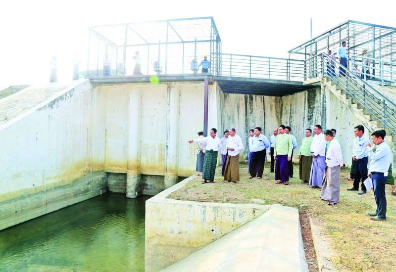 စိုက်ပျိုးရေး၊ မွေးမြူရေးနှင့် ဆည်မြောင်းဝန်ကြီးဌာန၊ သမဝါယမနှင့်ကျေးလက်ဖွံ့ဖြိုးရေးဝန်ကြီးဌာန ပြည်ထောင်စုဝန်ကြီး ဦးလှမိုးသည် ဌာနဆိုင်ရာတာဝန်ရှိသူများနှင့်အတူ ယနေ့ညနေပိုင်းတွင် နေပြည်တော် လယ်ဝေးမြို့နယ် မဒန်းရေလွှဲဆည်နှင့် ဆည်ရေသောက်စနစ်တည်ဆောက်ရေးလုပ်ငန်းခွင်ကို ကွင်းဆင်းကြည့်ရှုစစ်ဆေးရာ ဆည်မြောင်းနှင့်ရေအသုံးချမှုစီမံခန့်ခွဲရေးဦးစီးဌာန ညွှန်ကြားရေးမှူးချုပ် ဦးဗိုလ်ဗိုလ်ကျော်နှင့် တာဝန်ရှိသူများက ဆည်ရေပေးဝေမှု၊ ရေသောက်စနစ်နှင့် အကျိုးပြုဧရိယာများနှင့်ပတ်သက်၍ ရှင်းလင်းတင်ပြကြသည်။