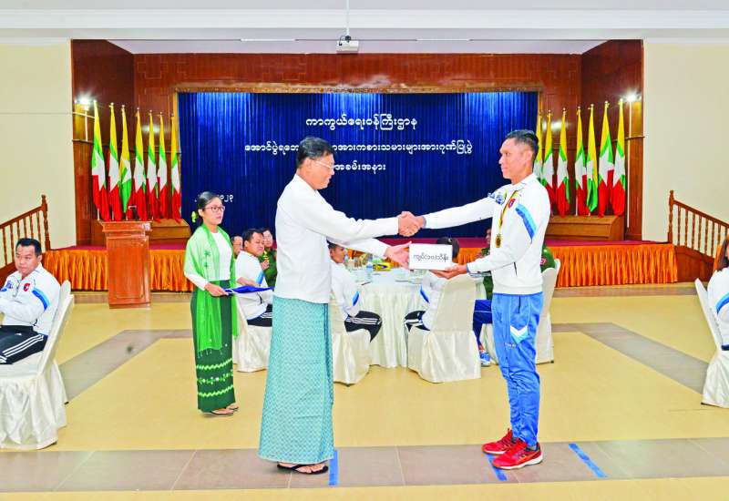 စိန်ရတုလွတ်လပ်ရေးနေ့အထိမ်းအမှတ် နိုင်ငံတော်ဝန်ကြီးချုပ်ဖလား ဝန်ကြီးဌာနပေါင်းစုံ အမျိုးသား/အမျိုးသမီး ဘော်လီဘောပြိုင်ပွဲတွင် ဆုတံဆိပ်ရရှိခဲ့သော အားကစားသမားများအား ဂုဏ်ပြုချီးမြှင့်ခြင်းအခမ်းအနားကို ယနေ့နံနက် ၁၀ နာရီက ကာကွယ်ရေးဝန်ကြီးဌာန အစည်းအဝေးခန်းမ၌ ကျင်းပသည်။