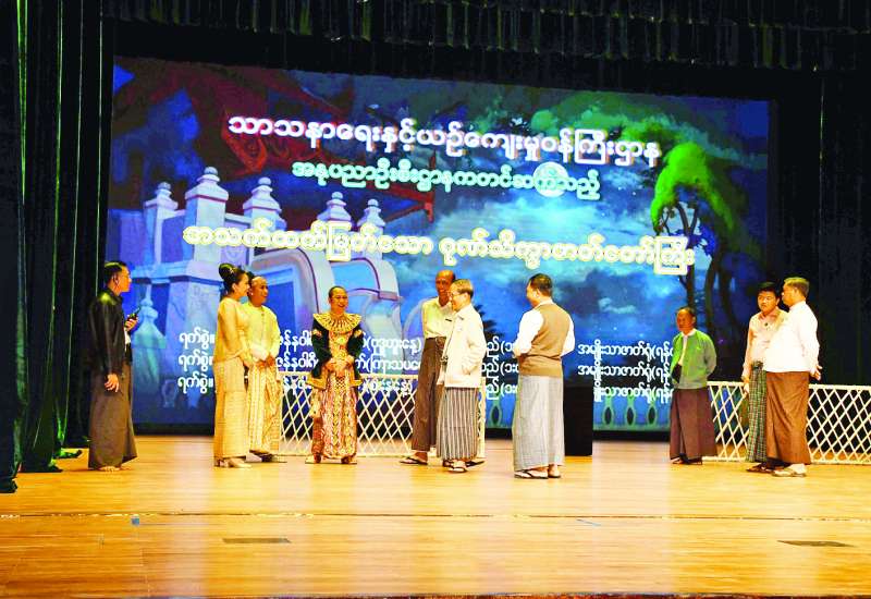 အများပြည်သူများ စိတ်အပန်းပြေစေရန်နှင့် စိတ်ခွန်အားရရှိစေရန်အတွက် ရန်ကုန်မြို့ အမျိုးသားဇာတ်ရုံကြီး၌ သာသနာရေးနှင့်ယဉ်ကျေးမှုဝန်ကြီးဌာန အနုပညာဦးစီးဌာနက စီစဉ်ကပြမည့် “အသက်ထက်မြတ်သော ဂုဏ်သိက္ခာဇာတ်တော်ကြီး” ဇာတ်တိုက်လေ့ကျင့်နေမှု၊ အသံပိုင်း၊ မီးပိုင်းနှင့် ဆက်တင်ပိုင်းဆိုင်ရာများကို ယနေ့နံနက်ပိုင်းက သာသနာရေးနှင့်ယဉ်ကျေးမှုဝန်ကြီးဌာန ပြည်ထောင်စုဝန်ကြီး ဦးကိုကို၊ ဒုတိယဝန်ကြီး ဒေါက်တာမိုးဇော်ထွန်းနှင့် တာဝန်ရှိသူများ သွားရောက်ကြည့်ရှုအားပေးပြီး လိုအပ်သည်များကို ဖြည့်ဆည်းဆောင်ရွက်ပေးသည်။