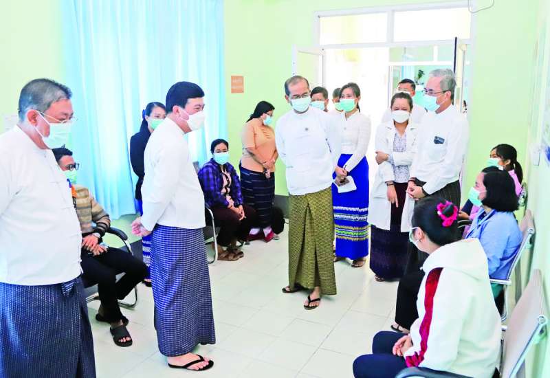 အလုပ်သမားဝန်ကြီးဌာန ပြည်ထောင်စုဝန်ကြီး ဒေါက်တာပွင့်ဆန်းသည် ဒုတိယဝန်ကြီး ဦးဝင်းရှိန်နှင့်အတူ ယနေ့နံနက်ပိုင်းတွင် လူမှုဖူလုံရေးအဖွဲ့ စာချုပ်ဆေးခန်းများဖြစ်သည့် ပြည်ထောင်စုနယ်မြေ (နေပြည်တော်) ဒက္ခိဏသီရိမြို့နယ်ရှိ လူမှုဖူလုံရေး-ကဲဝဲလ် အထွေထွေရောဂါကုဆေးခန်းနှင့် ဇမ္ဗူသီရိမြို့နယ် ဘောဂသိဒ္ဓိရပ်ကွက်ရှိ လူမှုဖူလုံရေး-ကဲဝဲလ် အထွေထွေရောဂါကုဆေးခန်းများတွင် အကျုံးဝင်အာမခံအလုပ်သမားများအား ကျန်းမာရေး စောင့်ရှောက်မှုပေးနေမှုများကို ကွင်းဆင်းစစ်ဆေး၍ အာမခံအလုပ်သမားများကို တွေ့ဆုံ အားပေးသည်။