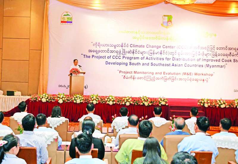 သယံဇာတနှင့်သဘာဝပတ်ဝန်းကျင်ထိန်းသိမ်းရေးဝန်ကြီးဌာန အပူပိုင်းဒေသစိမ်းလန်းစိုပြည်ရေးဦးစီးဌာနနှင့် ကိုရီးယားသမ္မတနိုင်ငံ Climate Change Center (CCC) တို့ပူးပေါင်း၍ ကိုရီးယားသမ္မတနိုင်ငံ Climate Change Center (CCC)၏ အစီအစဉ်ဖြင့် တောင်အာရှနှင့်အရှေ့တောင် အာရှ ဖွံ့ဖြိုးဆဲနိုင်ငံများ (မြန်မာနိုင်ငံ) စွမ်းအားမြှင့်မီးဖိုဖြန့်ဝေရေးစီမံကိန်း၏ စောင့်ကြည့်အကဲဖြတ်ခြင်း အလုပ်ရုံဆွေးနွေးပွဲအခမ်းအနားကို ယနေ့နံနက်ပိုင်းတွင် နေပြည်တော်ရှိ သင်္ဂဟဟိုတယ်၌ ကျင်းပသည်။