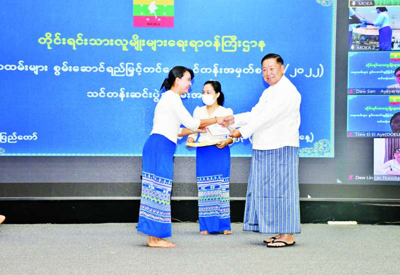 တိုင်းရင်းသားလူမျိုးများရေးရာဝန်ကြီးဌာန ဝန်ထမ်းစွမ်းဆောင်ရည်မြှင့်တင်ရေး(အရာထမ်း)သင်တန်း၊ သင်တန်းဆင်းပွဲအခမ်းအနားကို ယမန်နေ့မွန်းလွဲပိုင်းက တိုင်းရင်းသားလူမျိုးများရေးရာဝန်ကြီးဌာန ပြည်ထောင်စုဝန်ကြီးရုံး အစည်းအဝေးခန်းမ၌ ကျင်းပသည်။