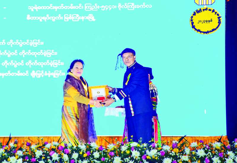 (၇၅)နှစ်မြောက် စိန်ရတုလွတ်လပ်ရေးနေ့ဂုဏ်ပြုအခမ်းအနားတွင် ပါဝင်ဆောင်ရွက်ခဲ့ကြသည့် သာသနာရေးနှင့်ယဉ်ကျေးမှုဝန်ကြီးဌာန ဝန်ကြီးရုံးဦးစီးဌာနများ၊ အမျိုးသားယဉ်ကျေးမှုနှင့် အနုပညာတက္ကသိုလ်များနှင့် အနုပညာအထက်တန်းကျောင်းများမှ ဝန်ထမ်းများ၊ ကျောင်းသား ကျောင်းသူများအား ဂုဏ်ပြုသည့်အခမ်းအနားကို Hotel Max ၌ ယမန်နေ့ ညနေပိုင်းက ကျင်းပခဲ့သည်။