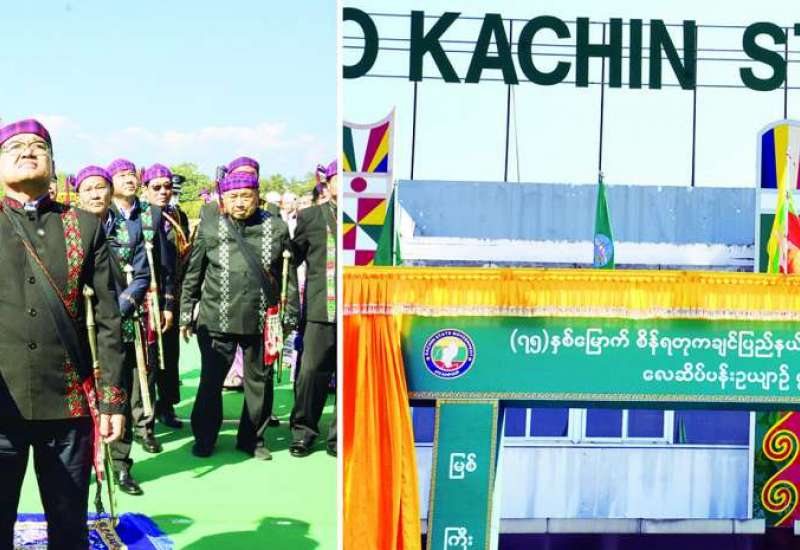 (၇၅) နှစ်မြောက် စိန်ရတုကချင်ပြည်နယ်နေ့အခမ်းအနားကို ယနေ့နံနက် ၈ နာရီတွင် ကချင်ပြည်နယ်အစိုးရအဖွဲ့ရုံးရှေ့ မြက်ခင်းပြင်၌ စည်ကားသိုက်မြိုက်စွာ ကျင်းပသည်။