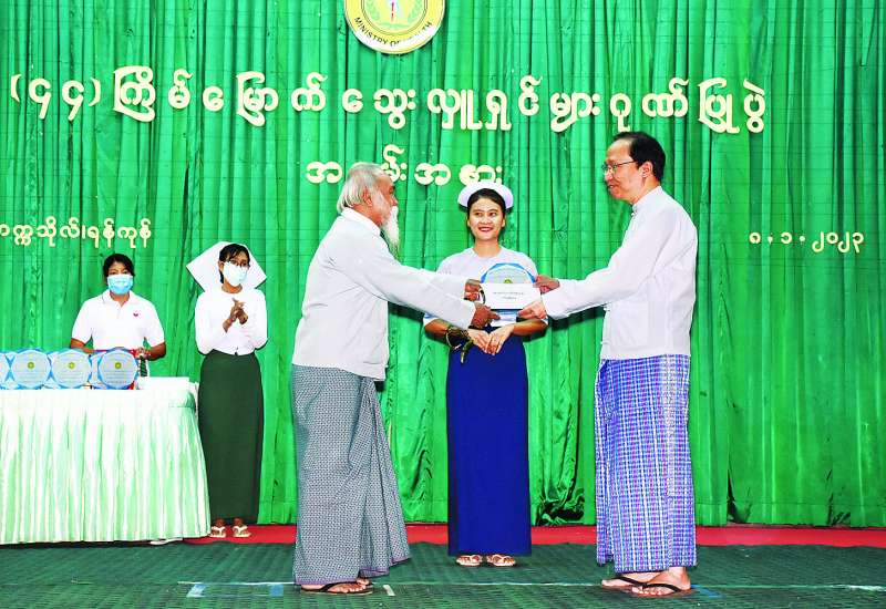 (၄၄)ကြိမ်မြောက် သွေးလှူရှင်များဂုဏ်ပြုပွဲနှင့် နိုင်ငံတော်စီမံအုပ်ချုပ်ရေးကောင်စီမှချီးမြှင့်သည့် လူမှုထူးချွန်တံဆိပ်(ပထမအဆင့်)ရရှိသော သွေးလှူရှင်များအား ဂုဏ်ပြုပွဲအခမ်းအနားကို ယနေ့မွန်းလွဲပိုင်းတွင် သူနာပြုတက္ကသိုလ်(ရန်ကုန်)၌ ကျင်းပသည်။