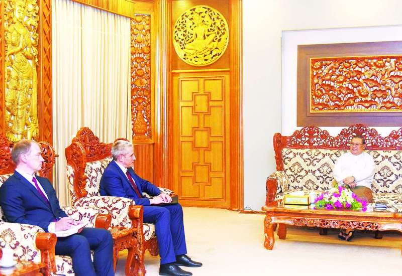 နိုင်ငံခြားရေးဝန်ကြီးဌာန ပြည်ထောင်စုဝန်ကြီး ဦးဝဏ္ဏမောင်လွင်သည် ဟနွိုင်းမြို့ အခြေစိုက် ပြည်ထောင်စုသမ္မတ မြန်မာနိုင်ငံတော်ဆိုင်ရာ အထူးအာဏာကုန်လွှဲအပ်ခြင်းခံရသော ဘယ်လာရုစ် သံအမတ်ကြီးအသစ်အဖြစ် ခန့်အပ်ခံရသည့် H.E. Mr. Uladzimir Baravikou အား ယနေ့ မွန်းလွဲ ၂ နာရီတွင် နေပြည်တော်ရှိ နိုင်ငံခြားရေးဝန်ကြီးဌာန ပြည်ထောင်စုဝန်ကြီး၏ ဧည့်ခန်းမ၌ လက်ခံတွေ့ဆုံသည်။