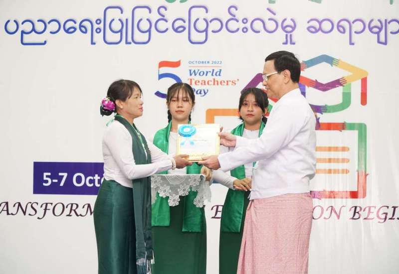 ၂၀၂၂ ခုနှစ် ကမ္ဘာ့ဆရာများနေ့ အထိမ်းအမှတ်အခမ်းအနားကို ယနေ့ နံနက် ၉ နာရီတွင် နေပြည်တော်၊ ပညာရေးဝန်ကြီးဌာနရှိ ရုံးအမှတ်(၁၃) အစည်းအဝေးခန်းမ၌ ကျင်းပသည်။ ဦးစွာ နေပြည်တော် အမှတ်(၂၂)၊ အခြေခံပညာအထက်တန်းကျောင်းမှ ဆရာမများက “မြတ်ဆရာ” သီချင်းဖြင့် ဖျော်ဖြေကြသည်။