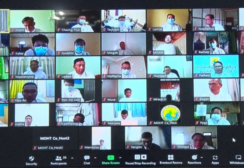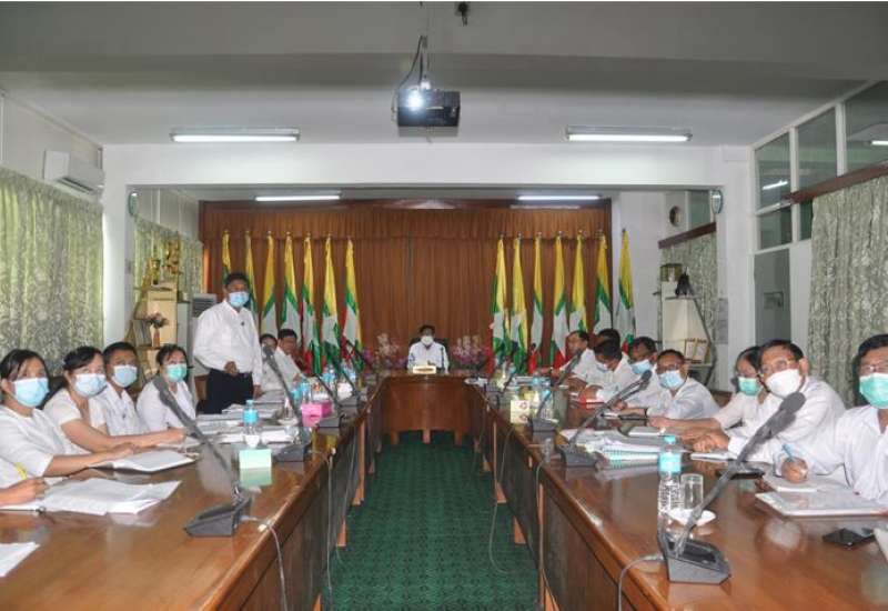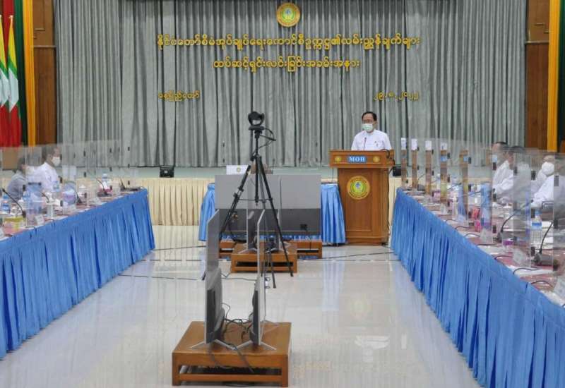 နိုင်ငံတော်စီမံအုပ်ချုပ်ရေးကောင်စီဥက္ကဋ္ဌ နိုင်ငံတော်ဝန်ကြီးချုပ်၏ လမ်းညွှန်ချက်များ ထပ်ဆင့်ရှင်းလင်းခြင်းကို ယနေ့နံနက် ၁၀ နာရီတွင် ကျန်းမာရေးဝန်ကြီးဌာန အစည်းအဝေးခန်းမတွင် Hybird စနစ်ဖြင့် ကျင်းပသည်။