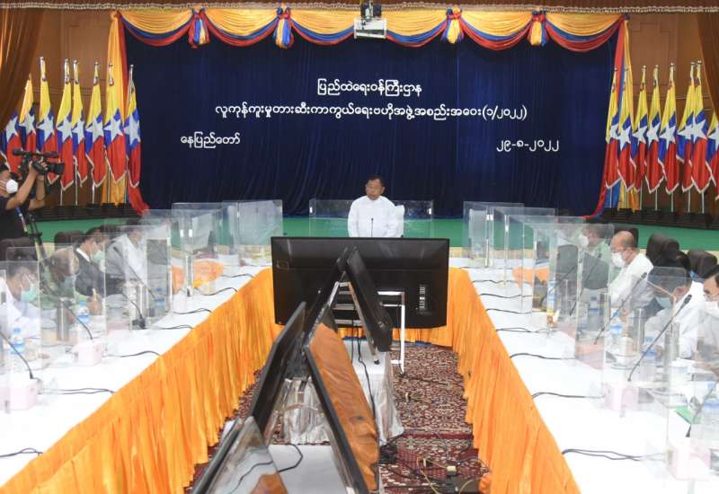 နိုင်ငံတော်စီမံအုပ်ချုပ်ရေးကောင်စီဥက္ကဋ္ဌ နိုင်ငံတော်ဝန်ကြီးချုပ်၏ လမ်းညွှန်ချက်များ ထပ်ဆင့်ရှင်းလင်းခြင်းကို ယမန်နေ့ညနေပိုင်းတွင် နေပြည်တော် ဟိုတယ်နှင့်ခရီးသွားလာရေးဝန်ကြီးဌာန နီလာခန်းမ၌ Hybrid စနစ်ဖြင့် ကျင်းပသည်။