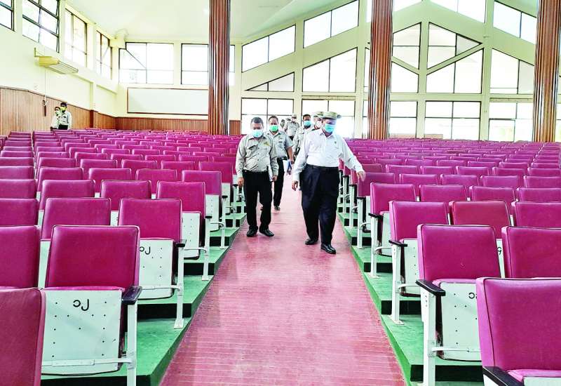 ဆောက်လုပ်ရေးဝန်ကြီးဌာန ပြည်ထောင်စုဝန်ကြီး ဦးရွှေလေးသည် တာဝန်ရှိသူများနှင့်အတူ ယမန်နေ့နံနက်ပိုင်းတွင် ရန်ကုန်တိုင်းဒေသကြီး လှည်းကူးမြို့နယ် ညောင်နှစ်ပင်ရှိ ပြည်ထောင်စုခန်းမ (ပင်မဆောင်) နှင့် ဆက်စပ်အဆောက်အအုံများ ပြုပြင်နေမှုနှင့် ပတ်ဝန်းကျင်စိမ်းလန်းစိုပြည်ရေး၊ ခြံစည်းရိုးကာရံခြင်းနှင့် အဝင်လမ်းသစ်ဖောက်လုပ်နေမှုကို ကြည့်ရှုစစ်ဆေးသည်။