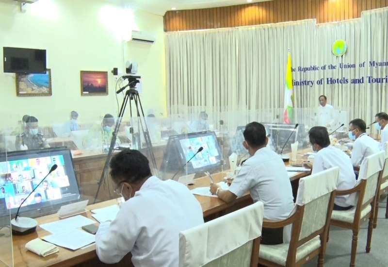 ဟိုတယ်နှင့် ခရီးသွားလာရေးဝန်ကြီးဌာန၊ ပြည်ထောင်စုဝန်ကြီး ဒေါက်တာဌေးအောင်သည် ယနေ့မွန်းလွဲပိုင်းတွင် ဝန်ကြီးဌာန၊ နီလာခန်းမ၌ ကျင်းပသော လုပ်ငန်းဗီဇာနှင့် ကမ္ဘာလှည့်ဗီဇာတို့ဖြင့် ခရီးသွားဧည့်သည်များ ပိုမိုလာရောက်ရေးနှင့် လိုအပ်သည်များ ကူညီဖြည့်ဆည်း ဆောင်ရွက်ပေးနိုင်ရေးအတွက် ညှိနှိုင်း အစည်းအဝေးသို့ တက်ရောက်သည်။