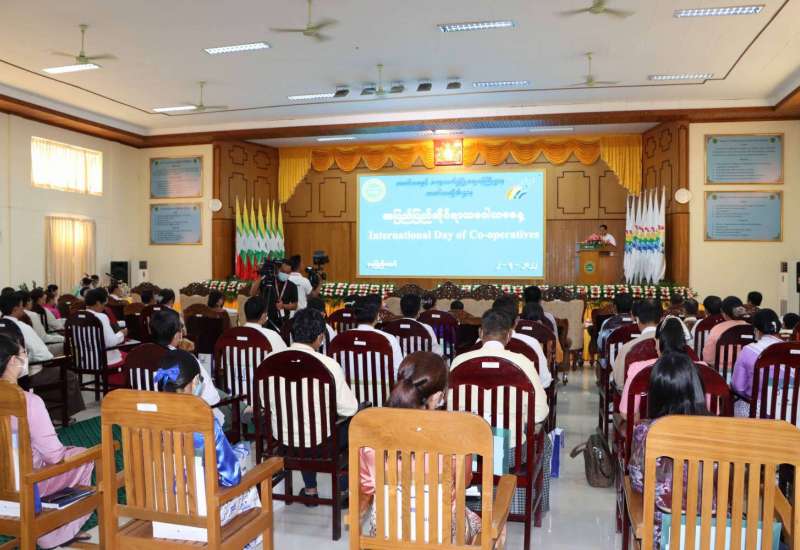 နှစ် (၁၀၀) ပြည့် အပြည်ပြည်ဆိုင်ရာသမဝါယမနေ့ အခမ်းအနားကို ယနေ့နံနက်ပိုင်းက သမဝါယမနှင့်ကျေးလက်ဖွံ့ဖြိုးရေးဝန်ကြီးဌာန၊ ရုံးအမှတ် (၁၆) ၌ ကျင်းပရာ သမဝါယမနှင့်ကျေးလက်ဖွံ့ဖြိုးရေးဝန်ကြီးဌာန၊ ပြည်ထောင်စုဝန်ကြီး ဦးလှမိုး၊ ဒုတိယဝန်ကြီး ဦးမြင့်စိုး၊ အမြဲတမ်းအတွင်းဝန်၊ ညွှန်ကြားရေးမှူးချုပ်များ၊ ဗဟိုသမဝါယမအသင်းလီမိတက် ဥက္ကဋ္ဌ၊ သမဝါယမနှင့် စီမံခန့်ခွဲမှုပညာတက္ကသိုလ်(သန်လျင်၊ စစ်ကိုင်း)တို့မှ ပါမောက္ခချုပ်များ၊ သမဝါယမကောလိပ် (မန္တလေး၊ ဖောင်ကြီး) တို့မှ ကျောင်းအုပ်ကြီးများ၊ တိုင်းဒေသကြီး/ ပြည်နယ်သမဝါယမဦးစီးဌာနများမှ ညွှန်ကြားရေးမှူးများ၊ တိုင်းဒေသကြီး/ပြည်နယ် သမဝါယမအသင်းစုချုပ် ဥက္ကဋ္ဌများ၊ သမဝါယမအသင်းသားများ၊ ဝန်ထမ်းများနှင့် တာဝန်ရှိသူများ တက်ရောက်ကြသည်။