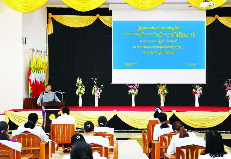 ပြည်ထောင်စုစာရင်းစစ်ချုပ်ရုံး နေပြည်တော် သင်တန်းကျောင်းတွင် ဖွင့်လှစ်သည့် IT Audit ဆိုင်ရာ Data Analysis သင်တန်းအမှတ်စဉ်(၁/၂၀၂၂) သင်တန်းဆင်းပွဲ အခမ်းအနားကို ယနေ့နံနက် ၉ နာရီခွဲက ပြည်ထောင်စု စာရင်းစစ်ချုပ်ရုံး (နေပြည်တော်) စုပေါင်းခန်းမ၌ ကျင်းပသည်။