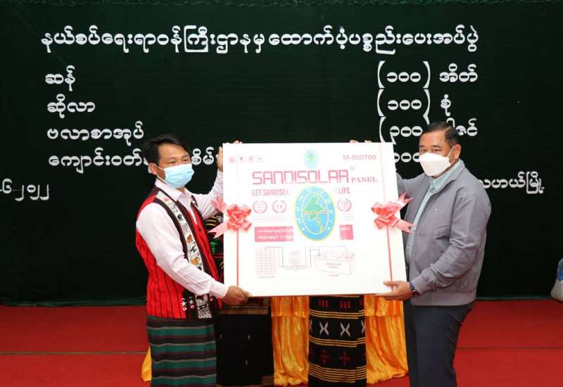 နယ်စပ်ရေးရာဝန်ကြီးဌာနနှင့် တိုင်းရင်းသားလူမျိုးများရေးရာဝန်ကြီးဌာနတို့ ပူးပေါင်း၍ ကရင်ပြည်နယ်(မြောက်ဘက်ခြမ်း)၊ သံတောင်ကြီးဒေသဝန်းကျင်နှင့် လိပ်သိုအနီးဝန်းကျင်ရှိ လျှပ်စစ်မီး အခက်အခဲကြုံတွေ့နေရသော ကျေးရွာများ မီးရရှိရေးအတွက် 90W ဆိုလာပြားနှင့် ဆက်စပ်ပစ္စည်းအစုံ ၁၀၀ ထောက်ပံ့ပေးအပ်ခြင်း အခမ်းအနားကို ယနေ့နံနက် ၁၀ နာရီခွဲတွင် နေပြည်တော်ရှိ တိုင်းရင်းသားလူမျိုးများရေးရာဝန်ကြီးဌာန၊ အစည်းအဝေးခန်းမ၌ ကျင်းပသည်။