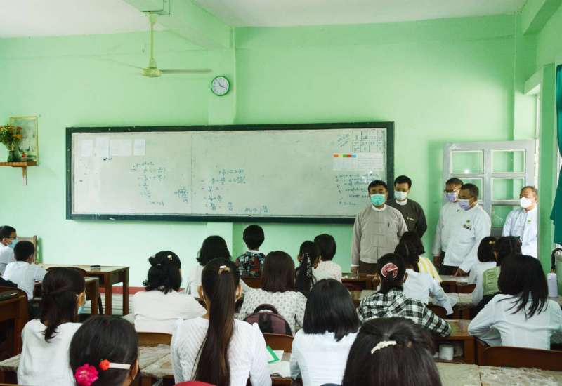 ပညာရေးဝန်ကြီးဌာန ပြည်ထောင်စုဝန်ကြီး ဒေါက်တာညွန့်ဖေသည် ဒုတိယဝန်ကြီးများ ဖြစ်ကြသော ဒေါက်တာဇော်မြင့်၊ ဦးဇော်ဝင်း၊ အခြေခံပညာဦးစီးဌာန ညွန်ကြားရေးမှူးချုပ် ဦးကျော်စွာသွင်နှင့်အတူ ယနေ့နံနက် ၁၀ နာရီခွဲတွင် နေပြည်တော် ဇမ္ဗူသီရိမြို့နယ် အမှတ်(၉)နှင့် အမှတ်(၁၁) အခြေခံပညာအထက်တန်းကျောင်းများသို့ သွားရောက်ကြည့်ရှုစစ်ဆေး၍ အဆိုပါကျောင်းများရှိ စာသင်ခန်းများတွင် ပညာသင်ကြားပေးနေသည့် ဆရာ ဆရာမများ၊ အေးချမ်းစွာ ပညာသင်ယူနေသည့် ကျောင်းသား ကျောင်းသူများကို ရင်းရင်းနှီးနှီး တွေ့ဆုံအားပေးစကား ပြောကြားသည်။