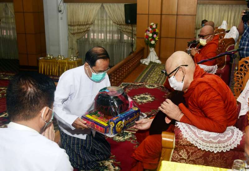 သာသနာရေးနှင့်ယဉ်ကျေးမှုဝန်ကြီးဌာန ပြည်ထောင်စုဝန်ကြီးဦးကိုကိုသည် တာဝန်ရှိသူများနှင့်အတူ နံနက် ၉ နာရီတွင် ရန်ကုန်တိုင်းဒေသကြီး၊ မရမ်းကုန်းမြို့နယ်၊ ဇမ္ဗူသီရိဗိမာန်တော်၌ ထေရဝါဒဗုဒ္ဓသာသနာပြုသြဝါဒါစရိယအဖွဲ့ ဆရာတော်ကြီးများအား ဖူးမြော်ကြည်ညိုပြီး သာသနာရေးဆိုင်ရာများလျှောက်ထားသည်။