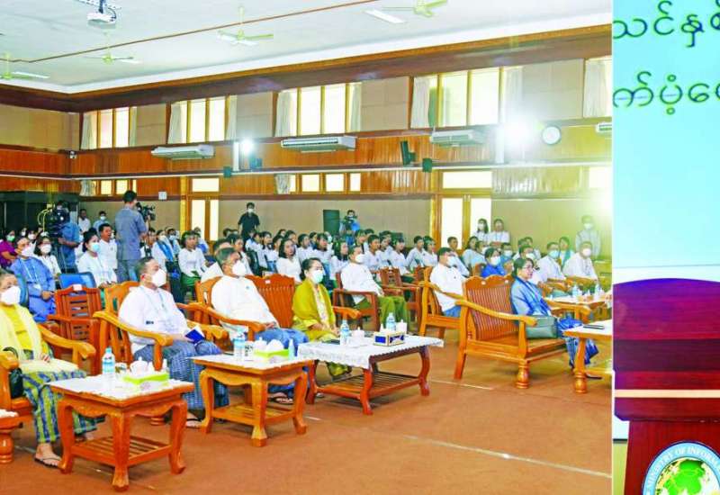ပြန်ကြားရေးဝန်ကြီးဌာန ၂၀၂၁-၂၀၂၂ ပညာသင်နှစ်တက္ကသိုလ်ဝင်တန်းအောင်မြင်သူများအား ဂုဏ်ပြုချီးမြှင့်ခြင်းနှင့် ၂၀၂၂-၂၀၂၃ ပညာသင်နှစ်အတွက် ဝန်ထမ်းများ၏ သားသမီးများအား ပညာသင်စရိတ်ထောက်ပံ့ပေးအပ်ခြင်းအခမ်းအနားကို ယနေ့နံနက် ၁၀ နာရီတွင် နေပြည်တော်ရှိ ပြန်ကြားရေးဝန်ကြီးဌာန အစည်းအဝေးခန်းမ၌ ကျင်းပသည်။