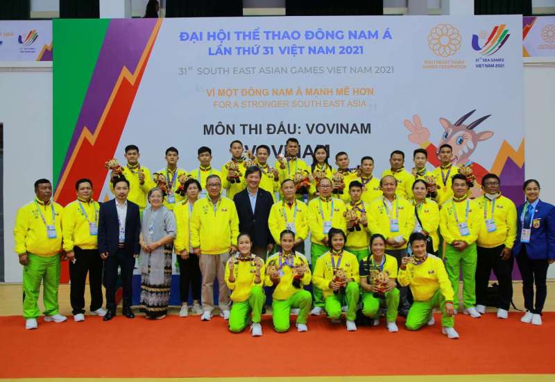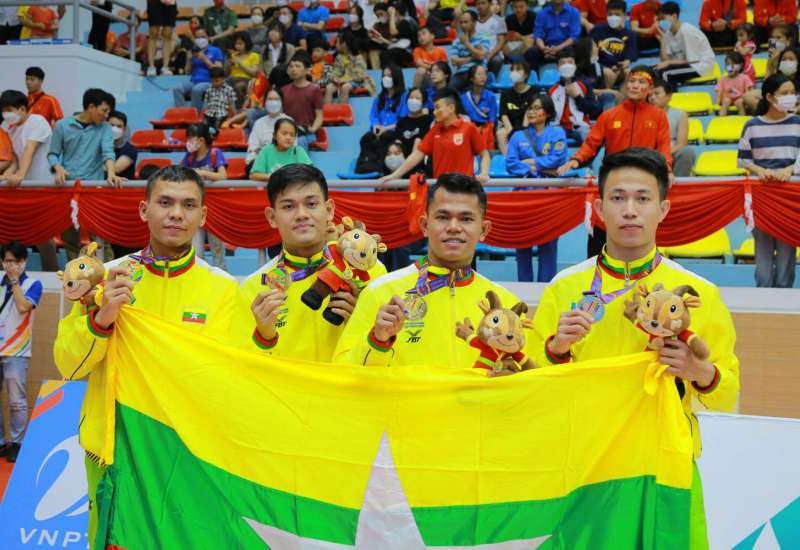 ဗီယက်နမ်နိုင်ငံ၌ အိမ်ရှင်အဖြစ် လက်ခံကျင်းပသည့် (၃၁)ကြိမ်မြောက် အရှေ့တောင်အာရှ အားကစားပြိုင်ပွဲကို မြို့အသီးသီးရှိ အားကစားကွင်း/ အားကစားရုံများ၌ ကျင်းပလျက်ရှိရာ ယနေ့ ညနေပိုင်းတွင် ဟနွိုင်းမြို့ရှိ Soc Son အားကစားရုံ၌ ဗိုဗီနမ်အားကစားနည်းမှ Male Leg Attack Technique 04 Males, Each Performs 2 Legs Attack Technique (လေးယောက်တွဲ)အပြပွဲစဉ်၌ မောင်အောင်ခိုင်လင်း၊ မောင်ရာဇာထွန်း၊ မောင်ဟိန်းထက်အောင်နှင့် မောင်ကျော်သူစိုးအောင်တို့က (၉)ခုမြောက် ရွှေတံဆိပ်ဆုကို ထိုက်ထိုက်တန်တန် ထပ်မံဆွတ်ခူးရယူပေးနိုင်ခဲ့ပြီး၊ (60)ကီလိုတန်း(အတိုက်)ပွဲစဉ်၌ မရွှေသက်ထားက ကြေးတံဆိပ်ဆုကို လည်းကောင်း၊ Bac Ninh Gymnasium အားကစားရုံ၌ လက်ဝှေ့အားကစားနည်းမှ (-57)ကီလိုတန်းပွဲစဉ်၌ မောင်နိုင်လတ်က ငွေတံဆိပ်ဆုကို လည်းကောင်း ထပ်မံဆွတ်ခူး ရရှိခဲ့ကြသည်။