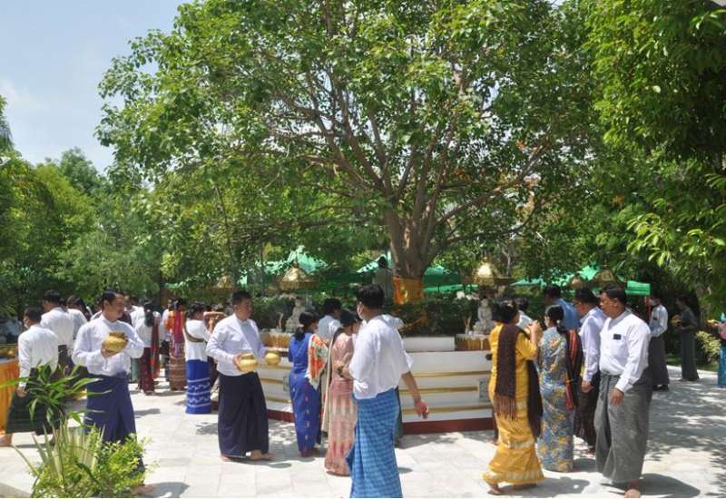 စက်မှုဝန်ကြီးဌာန၊ ဝန်ထမ်းများနှင့် ဝန်ထမ်းမိသားစုများ၏ ကဆုန်ညောင်ရေသွန်းလောင်းခြင်း အခမ်းအနားကို ယနေ့နံနက်ပိုင်းတွင် မဟာဗောဓိညောင်ပင်တည်ရှိသည့် ထီးသုံးလက်တောင်ကုန်း၌ ကျင်းပသည်။