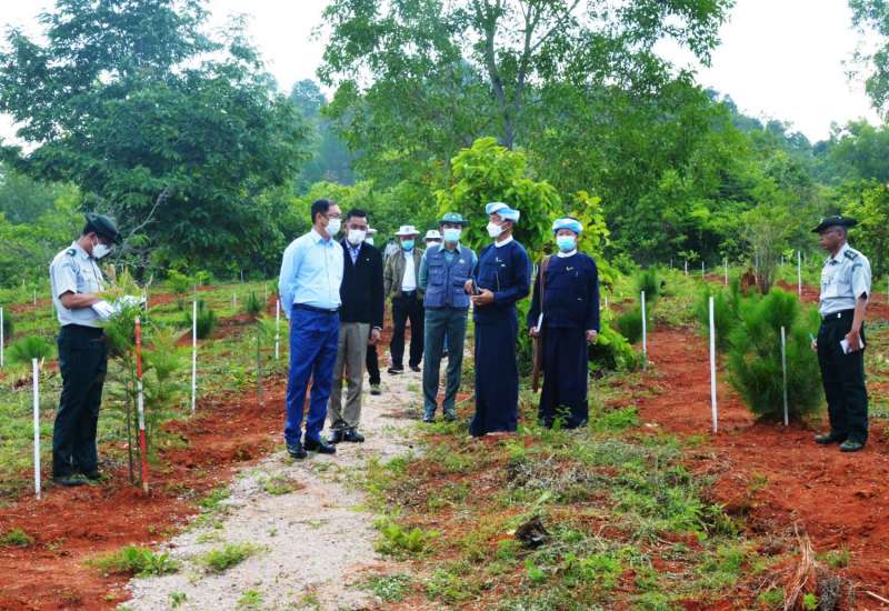 သယံဇာတနှင့်သဘာဝပတ်ဝန်းကျင်ထိန်းသိမ်ရေးဝန်ကြီးဌာန၊ ပြည်ထောင်စုဝန်ကြီး ဦးခင်မောင်ရီသည် ရှမ်းပြည်နယ် သယံဇာတရေးရာဝန်ကြီး၊ တာဝန်ရှိသူများနှင့်အတူ ယမန်နေ့က ရှမ်းပြည်နယ် တောင်ပိုင်း၊ ဟိုပုံးမြို့နယ်၊ နမ့်ခုတ်ကြိုးပြင် ကာကွယ်တောရှိ (၃/၂၀၂၁) ရေဝေရေလဲစိုက်ခင်း (၂၅)ဧကနှင့် (၁/၂၀၂၂) စက်မှုကုန်ကြမ်း ထင်းရှူးစိုက်ခင်း (၂၅) ဧကသို့ ရောက်ရှိပြီး စိုက်ခင်းများ ရှင်သန်အောင်မြင်ဖြစ်ထွန်းနေမှုကို ကြည့်ရှုစစ်ဆေးသည်။