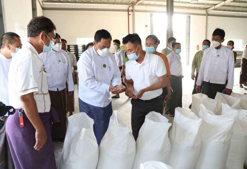 သမဝါယမနှင့် ကျေးလက်ဖွံ့ဖြိုးရေးဝန်ကြီးဌာန၊ ပြည်ထောင်စုဝန်ကြီး ဦးလှမိုးသည် ဒုတိယဝန်ကြီး ဦးမြင့်စိုး၊ ညွှန်ကြားရေးမှူးချုပ်များ၊တာဝန်ရှိသူများနှင့်အတူ ယနေ့မွန်းလွဲပိုင်းတွင် နေပြည်တော် ကောင်စီနယ်မြေ ဇေယျာသီရိမြို့နယ်၊ မအူတော ကျေးရွာအုပ်စု၊ စိမ်းစားပင်ကျေးရွာရှိ ရွှေဇေယျာ စိုက်ပျိုးထုတ်လုပ်ရေး သမဝါယမအသင်းမှ စမ်းသပ်လည်ပတ်လျက်ရှိသော ဆန်စက်သို့ ရောက်ရှိပြီး ရွှေဇေယျာစိုက်ပျိုးထုတ်လုပ်ရေးသမဝါယမအသင်းမှ တာဝန်ရှိသူများ၊ စက်ရုံတာဝန်ခံများနှင့် တွေ့ဆုံသည်။