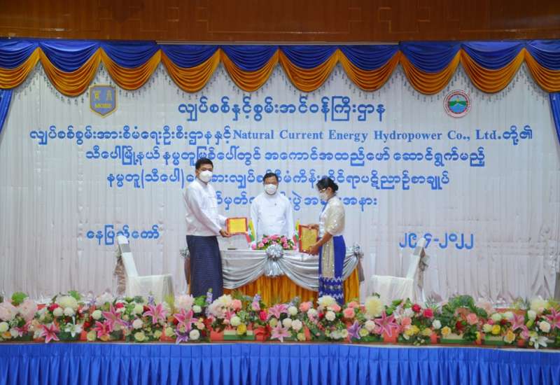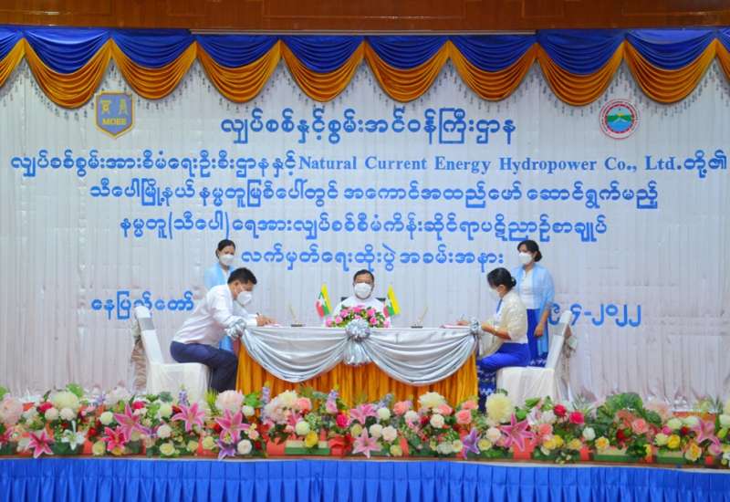 လျှပ်စစ်နှင့်စွမ်းအင်ဝန်ကြီးဌာန၊ လျှပ်စစ်ဓာတ်အားစီမံရေးဦးစီးဌာနနှင့် Natural Current Energy Hydropower Co., Ltd တို့အကြား ရှမ်းပြည်နယ်(မြောက်ပိုင်း)၊ ကျောက်မဲခရိုင်၊ သီပေါမြို့နယ် နမ္မတူမြစ်ပေါ်တွင် အကောင်အထည်ဖော်ဆောင်ရွက်မည့် နမ္မတူ(သီပေါ) ရေအားလျှပ်စစ်စီမံကိန်း အကောင်အထည်ဖော်ဆောင်ရွက်နိုင်ရန် စီမံကိန်းဆိုင်ရာ ပဋိညာဉ်စာချုပ်လက်မှတ်ရေးထိုးခြင်း အခမ်းအနားကို ယနေ့ မွန်းတည့် ၁၂ နာရီတွင် လျှပ်စစ်နှင့်စွမ်းအင်ဝန်ကြီးဌာန၊ ပြည်ထောင်စုဝန်ကြီးရုံး၊ အစည်းအဝေးခန်းမ၌ ကျင်းပသည်။