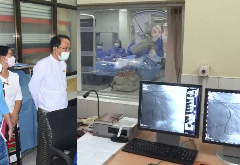 ကျန်းမာရေးဝန်ကြီးဌာန၊ ပြည်ထောင်စုဝန်ကြီး ပါမောက္ခ ဒေါက်တာသက်ခိုင်ဝင်းသည် ယနေ့နံနက်ပိုင်းတွင် ပြည်ထောင်စုနယ်မြေ၊ နေပြည်တော်၊ ခုတင်(၅၀)ဆံ့ ဇဗ္ဗူသီရိဆေးရုံ၌ Myancopharm ကိုဗစ်-၁၉ ရောဂါ ကာကွယ်ဆေးထိုးနှံနေမှုများကို ကြည့်ရှု အားပေးပြီး လာရောက်ထိုးနှံနေသူများကို ရင်းရင်းနှီးနှီးနှုတ်ဆက်ကာ လုပ်ငန်းဆောင်ရွက်နေမှုများကို လှည့်လည်ကြည့်ရှု စစ်ဆေးသည်။