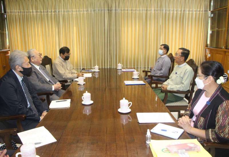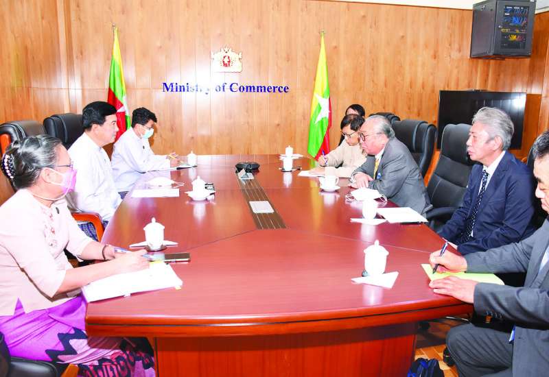 စီးပွားရေးနှင့် ကူးသန်းရောင်းဝယ်ရေးဝန်ကြီးဌာန ပြည်ထောင်စုဝန်ကြီး ဒေါက်တာပွင့်ဆန်းသည် Japan Myanmar Association ၏ Chairman, Mr. Watanabe Hideo ဦးဆောင်သည့် ကိုယ်စားလှယ်အဖွဲ့ကို ယနေ့မွန်းလွဲပိုင်းက စီးပွားရေးနှင့် ကူးသန်းရောင်းဝယ်ရေးဝန်ကြီးဌာန ဧည့်ခန်းမ၌ လက်ခံတွေ့ဆုံသည်။