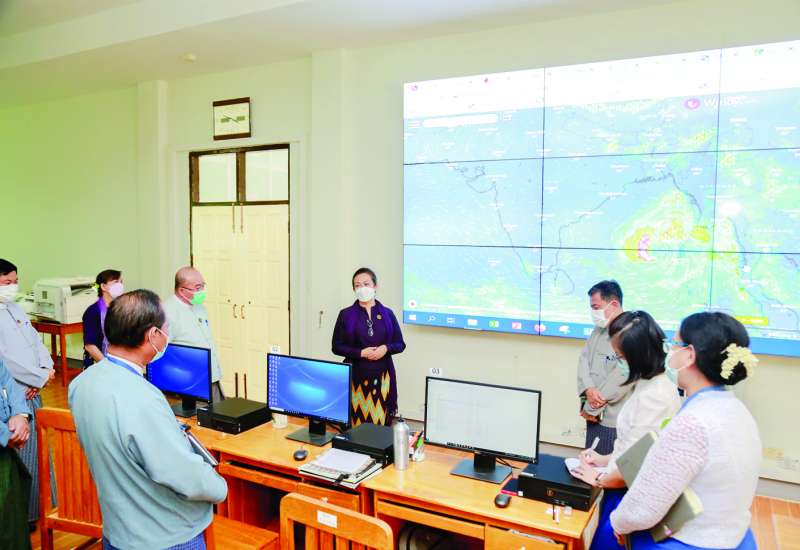 လူမှုဝန်ထမ်း၊ ကယ်ဆယ်ရေးနှင့် ပြန်လည်နေရာချထားရေးဝန်ကြီးဌာန ပြည်ထောင်စုဝန်ကြီး ဒေါက်တာသက်သက်ခိုင်၊ ဒုတိယဝန်ကြီး ဦးအောင်ထွန်းခိုင်နှင့် တာဝန်ရှိသူများသည် ယနေ့မွန်းလွဲ ၃ နာရီခွဲတွင် ဘေးအန္တရာယ်ဆိုင်ရာ စီမံခန့်ခွဲမှုဦးစီးဌာနတွင် ဖွင့်လှစ်ထားရှိသည့် အရေးပေါ်အခြေအနေ စီမံခန့်ခွဲမှုဗဟိုဌာနသို့ သွားရောက်ကြည့်ရှု စစ်ဆေးသည်။
