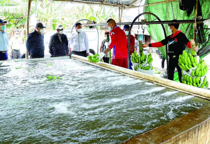 စိုက်ပျိုးရေး၊ မွေးမြူရေးနှင့်ဆည်မြောင်းဝန်ကြီးဌာန ပြည်ထောင်စုဝန်ကြီး ဦးတင်ထွဋ်ဦး၊ ကချင်ပြည်နယ်ဝန်ကြီးချုပ် ဦးခက်ထိန်နန်နှင့် ပြည်နယ်အစိုးရအဖွဲ့ဝင် ဝန်ကြီးများ၊ ဌာနဆိုင်ရာတာဝန်ရှိသူများသည် မေ ၂ ရက် နံနက်ပိုင်းက ဝိုင်းမော်မြို့နယ် စမ်းခါးကျေးရွာရှိ လုံယောင်းကုမ္ပဏီက စိုက်ပျိုးထားရှိသည့် တစ်သျှူးငှက်ပျောစိုက်ခင်းများနှင့် ငှက်ပျောခိုင်များ ခုတ်သိမ်း ထုပ်ပိုးနေမှုတို့ကို ကြည့်ရှုအားပေးကြသည်။