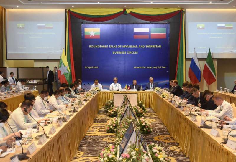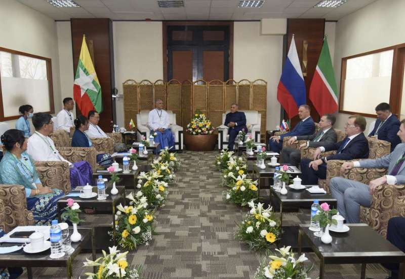 မြန်မာနိုင်ငံနှင့် Republic of the Tatarstan တို့အကြား ပူးပေါင်းဆောင်ရွက်မှု မြှင့်တင်ရန် မြန်မာနိုင်ငံသို့ ရောက်ရှိနေသည့် Republic of the Tatarstan သမ္မတ H.E. Mr. Rustam Nurgaliyevich Minnikhanov နှင့် ကိုယ်စားလှယ်အဖွဲ့အား ရင်းနှီးမြှုပ်နှံမှုနှင့် နိုင်ငံခြားစီးပွားဆက်သွယ်ရေးဝန်ကြီးဌာန၊ ပြည်ထောင်စုဝန်ကြီး ဦးအောင်နိုင်ဦးက ယနေ့ နံနက်ပိုင်းတွင် နေပြည်တော်ရှိ PARKROYAL Hotel ၌ တွေ့ဆုံသည်။
