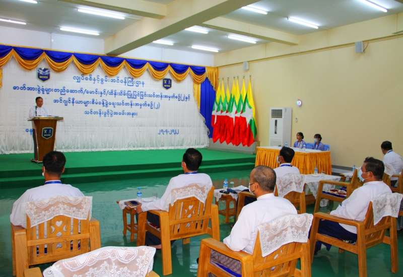 လျှပ်စစ်နှင့်စွမ်းအင်ဝန်ကြီးဌာန၊ ဓာတ်အားခွဲရုံများ တည်ဆောက်/ မောင်းနှင်/ ပြုပြင်ထိန်းသိမ်းခြင်း သင်တန်းအမှတ်စဉ် (၂)နှင့် အင်ဂျင်နီယာများစီမံခန့်ခွဲရေး သင်တန်းအမှတ်စဉ်(၂) သင်တန်းဖွင့်ပွဲ အခမ်းအနားကို ယနေ့နံနက် ၉ နာရီခွဲတွင် လျှပ်စစ်နှင့်စွမ်းအင်ဝန်ကြီးဌာန၊ နေပြည်တော် ဗဟိုသင်တန်းကျောင်း၌ Covid- 19 ကာကွယ်ရေးနည်းစနစ်များနှင့်အညီ ကျင်းပသည်။