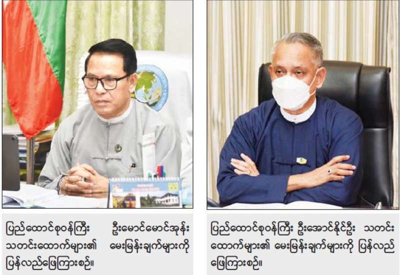 ပြည်ထောင်စုဝန်ကြီး ဦးမောင်မောင်အုန်းနှင့် ဦးအောင်နိုင်ဦးတို့သည် AP သတင်းဌာန၊ ရိုက်တာသတင်းဌာန၊ South China Morning Post သတင်းဌာနနှင့် Straits Times သတင်းဌာန၊ China Central Television(CCTV) သတင်းဌာန၊ People’s Daily သတင်းဌာနနှင့် ဆင်ဟွာသတင်းဌာနတို့မှ သတင်း ထောက်များကို ယမန်နေ့နံနက်ပိုင်းတွင် ပြည်ထောင်စုဝန်ကြီးရုံးဧည့်ခန်းမများ၌ ဗီဒီယိုကွန်ဖရင့်ဖြင့် တွေ့ဆုံ ၍ မေးမြန်းချက်များကို ပြန်လည်ဖြေကြားသည်။