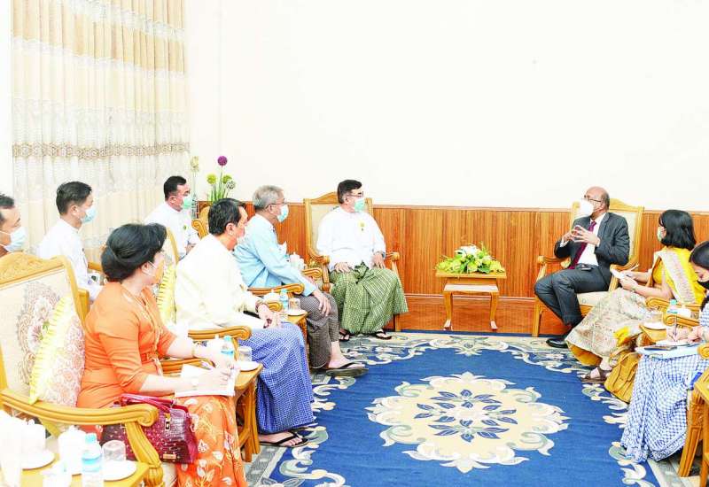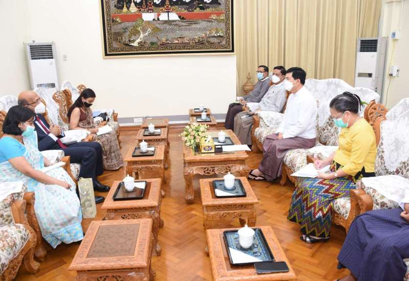ကျန်းမာရေးဝန်ကြီးဌာန ပြည်ထောင်စုဝန်ကြီး ဒေါက်တာသက်ခိုင်ဝင်းသည် ယနေ့မွန်းလွဲပိုင်းတွင် မြန်မာနိုင်ငံဆိုင်ရာ အိန္ဒိယသံအမတ်ကြီး မစ္စတာ ဗီနေးကူးမား ဦးဆောင်သည့် ကိုယ်စားလှယ်အဖွဲ့အား အဆိုပါဝန်ကြီးဌာနဧည့်ခန်းမ၌ လက်ခံတွေ့ဆုံသည်။