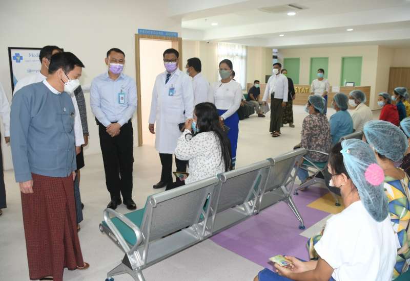 အလုပ်သမားဝန်ကြီးဌာန ပြည်ထောင်စုဝန်ကြီး ဦးမြင့်ကြိုင်နှင့် ရန်ကုန်တိုင်းဒေသကြီး အစိုးရအဖွဲ့ဝင် တိုင်းရင်းသားရေးရာဝန်ကြီး ဦးစောဂျက်ကော့ထူး၊ တာဝန်ရှိသူများသည် ယနေ့နံနက်ပိုင်းတွင် အလုပ်သမားဝန်ကြီးဌာန၊ လူမှုဖူလုံရေးအဖွဲ့နှင့် ပူးပေါင်းဆောင်ရွက်လျက်ရှိသော မိုးကောင်းရတနာ မိခင်နှင့်ကလေးဆေးခန်း (ဘောက်ထော်)သို့ရောက်ရှိကြပြီး ပြင်ပလူနာဌာန၌ လာရောက်ပြသသည့် ပြင်ပလူနာများအား ရင်းရင်းနှီးနှီး နှုတ်ဆက်အားပေးသည်။