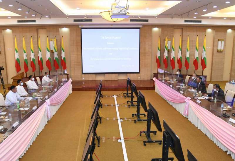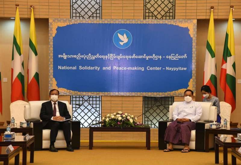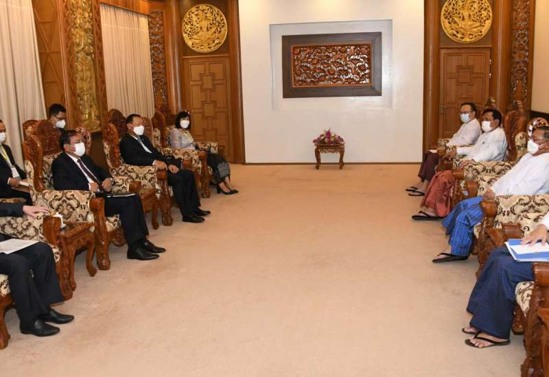 နိုင်ငံတော်စီမံအုပ်ချုပ်ရေးကောင်စီအဖွဲ့ဝင်၊ ပြည်ထောင်စုအစိုးရအဖွဲ့ရုံးဝန်ကြီးဌာန(၁) ပြည်ထောင်စုဝန်ကြီး၊ အမျိုးသားစည်းလုံးညီညွတ်ရေးနှင့် ငြိမ်းချမ်းရေးဖော်ဆောင်မှုညှိနှိုင်းရေး ကော်မတီ ဥက္ကဋ္ဌ ဒုတိယဗိုလ်ချုပ်ကြီးရာပြည့်သည် အာဆီယံအလှည့်ကျဥက္ကဋ္ဌ၏ မြန်မာနိုင်ငံ ဆိုင်ရာ အထူးကိုယ်စားလှယ်၊ ကမ္ဘောဒီးယားနိုင်ငံ ဒုတိယဝန်ကြီးချုပ်နှင့် နိုင်ငံခြားရေးနှင့် အပြည်ပြည်ဆိုင်ရာ ပူးပေါင်းဆောင်ရွက်ရေးဝန်ကြီး မစ္စတာ ပရပ်ဆုတ်ခွန်း ဦးဆောင်သည့် ကိုယ်စားလှယ် အဖွဲ့အား ယနေ့ ညနေ ၄ နာရီ ၄၅ မိနစ်တွင် နေပြည်တော်ရှိ အမျိုးသားစည်းလုံး ညီညွတ်ရေးနှင့် ငြိမ်းချမ်းရေး ဖော်ဆောင်မှု ဗဟိုဌာန၌ လက်ခံတွေ့ဆုံသည်။