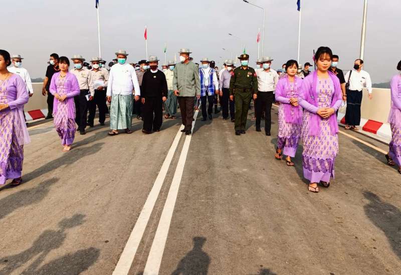 (၇၇)နှစ်မြောက် တပ်မတော်နေ့ကို ကြိဆိုဂုဏ်ပြုသောအားဖြင့် ဆောက်လုပ်ရေးဝန်ကြီးဌာန၊ တံတားဦးစီးဌာန၊ တံတားအထူးအဖွဲ့ (၁၀) မှ တာဝန်ယူတည်ဆောက်ပြီးစီးသည့် ပဲခူးတိုင်းဒေသကြီး၊ တောင်ငူခရိုင်၊ ဖြူးမြို့နယ်၊ ဖြူး - အုတ်ဖြတ် - မုန်းလမ်းပေါ်ရှိ အရှည် ပေ (၆၂၀)၊ စစ်တောင်းမြစ်ကူးတံတား (အုန်ဖြတ်) ဖွင့်ပွဲအခမ်းအနားကို ယနေ့နံနက်ပိုင်းတွင် အဆိုပါတံတားရှိ မင်္ဂလာမဏ္ဍပ်၌ ကိုဗစ် - ၁၉ ညွှန်ကြားချက်များနှင့်အညီ ကျင်းပသည်။